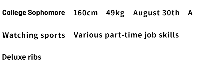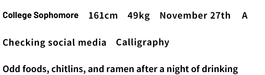 An easy-going girl who is easy to get along with. Besides being a university student, she also works as a model. She was the center of attention when she entered university, but she became true friends with Rika, who would talk to her despite all this attention. Despite her calm personality, she loves concerts and is dedicated to her DJ activities.
