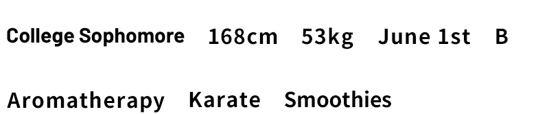She leads a positive life on campus with the motto of "Life's too short not to have fun!" Loves to dance and sing with her friends at parties. She began DJ activities with her best friend Marika, along with Saori & Dalia who she met by chance. She's naturally gifted and overcomes everything through luck and charm.